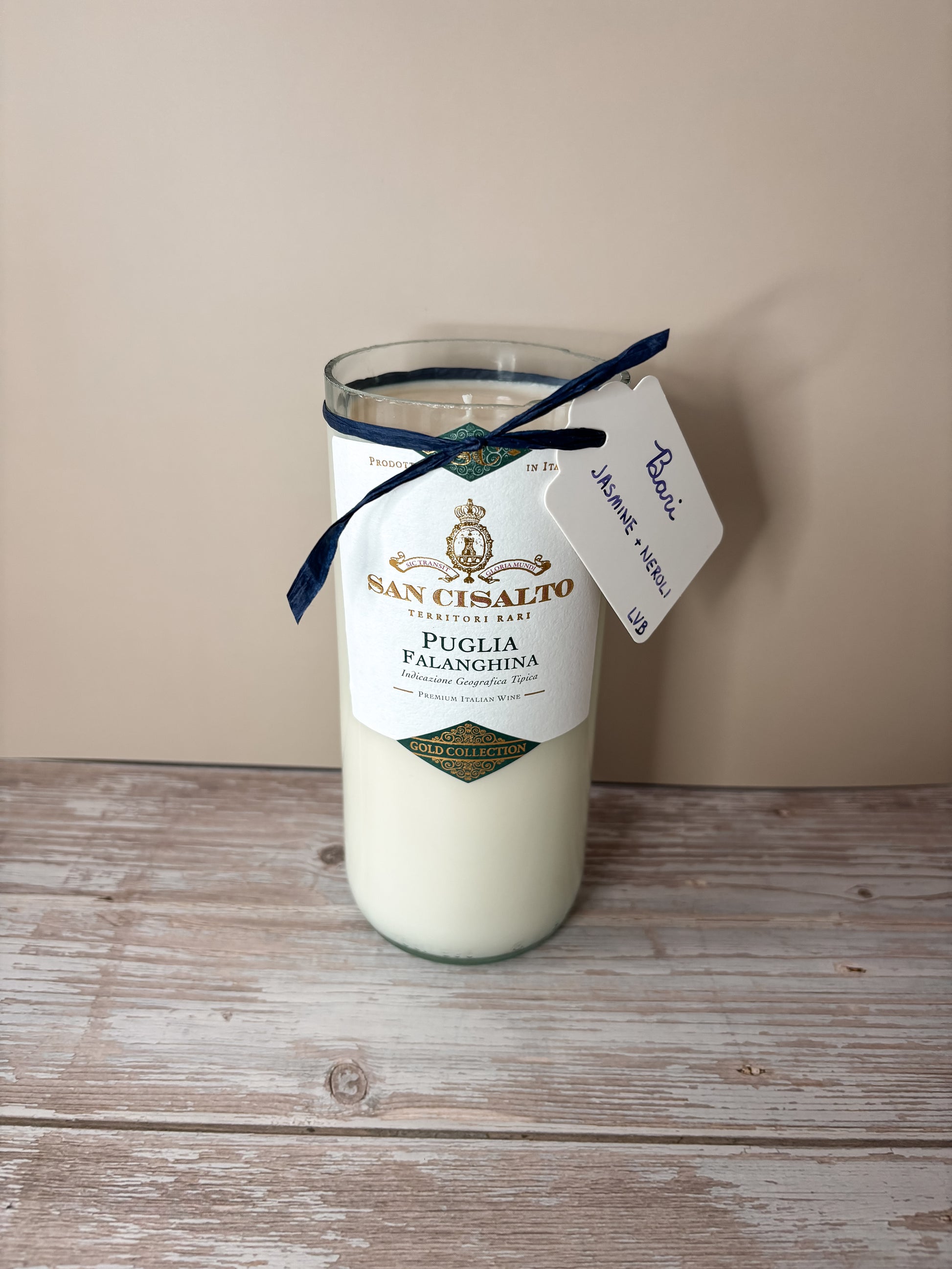 Effortlessly sunlit and romantic, Bari captures the charm of southern Italy’s Adriatic coast — where whitewashed walls meet blooming terraces and sea breezes drift through narrow streets. Hand-poured into an upcycled San Cisalto Falanghina bottle, it embodies the warmth of coastal life and the serenity of slow afternoons. Luminous jasmine intertwines with bright neroli, creating a scent that feels like golden light on stone — clean, floral, and endlessly transportive.