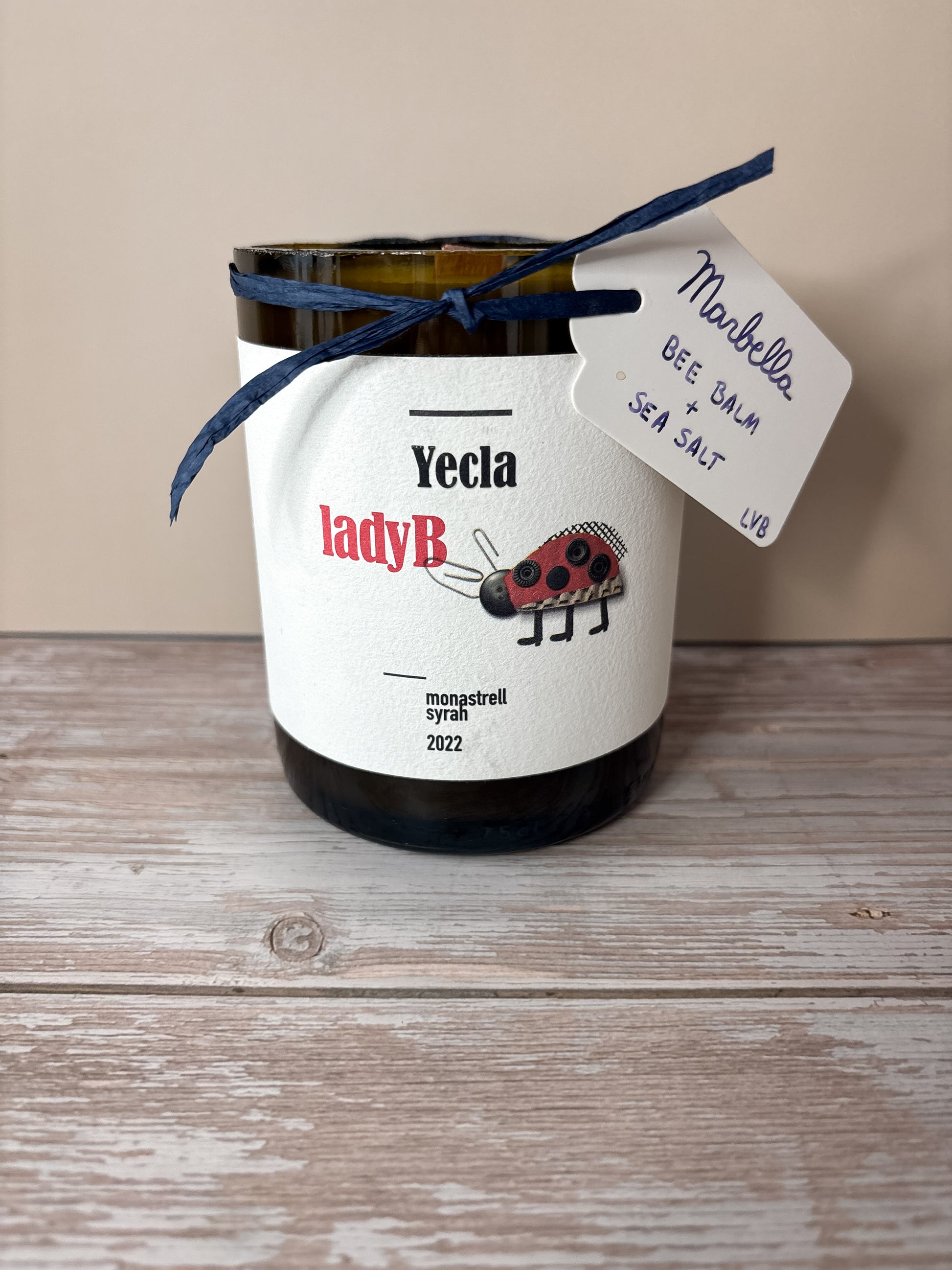 Sun-drenched and serene, Marbella evokes the magic of the Mediterranean coast — where gentle sea breezes mingle with wildflower meadows. Hand-poured into a Yecla Monastrell Syrah blend bottle with a soothing wood wick, it combines the herbal sweetness of bee balm with the crisp freshness of sea salt, creating a fragrance that is both grounding and uplifting. Adorned with an adorable ladybug, this candle carries a playful, whimsical touch, turning every flicker into a moment of handmade charm and coastal tranquility. Its wooden wick gently crackles when lit