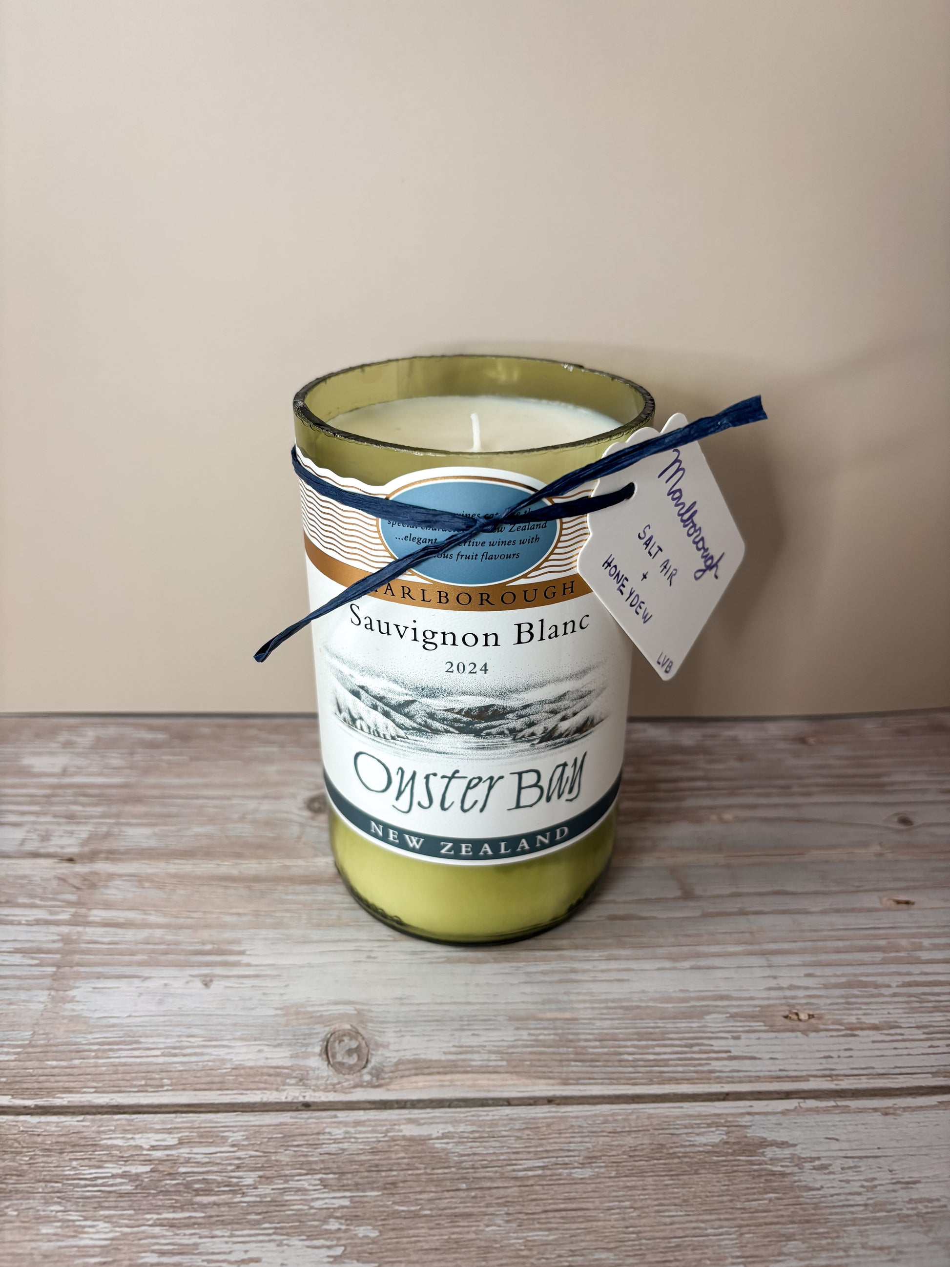 Crisp and tranquil, Marlborough captures the essence of New Zealand’s coastal vineyards — where ocean breezes meet rolling green hills and sunlight glints off every glass. Hand-poured into an upcycled Oyster Bay Sauvignon Blanc bottle, it blends fresh sea air with the subtle sweetness of honeydew, creating a scent that’s clean, cool, and quietly luminous.